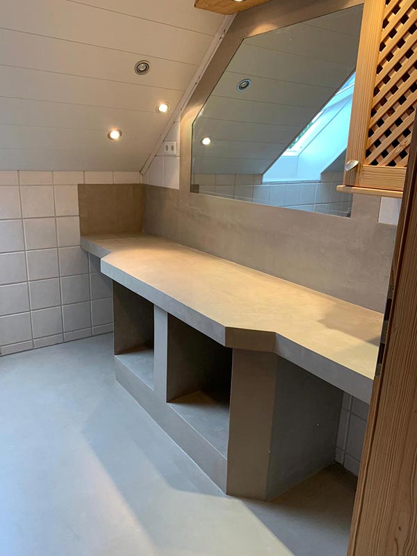 Die Umsetzung von einem fugenlosen Traum in verschiedenen Räumen. Mit unserer Ideenvielfalt und einer professionellen Ausführung wird Ihr Projekt im Eigenheim erfolgreich realisiert. Bei Mikrozement handelt es sich um eine vielseitige Spachtelmasse für Wand, Boden und für nahezu jede Oberfläche. Es kann auf kleinen und großen Flächen zum Einsatz kommen. Sogar Möbel können mit Mikrozement beschichtet werden. Keim- und bakterienfrei. Schimmel sowie jegliche Arten von Mikroorganismen haben keine Möglichkeit, sich durchzusetzen.